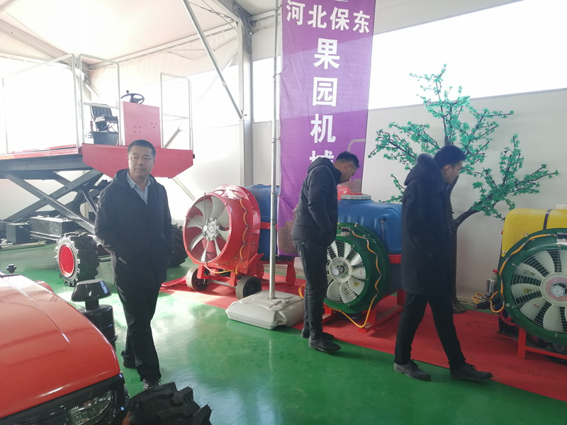 神池縣的相關領導在王光宇總經理的陪同下,詳細查看了河北保東的果園機械以及配套機具,詳細詢問了小四輪的發動機品牌,檢查車子的性能;重點看了果園管理機、果園風送彌霧打藥機和果園專用多功能作業平臺。